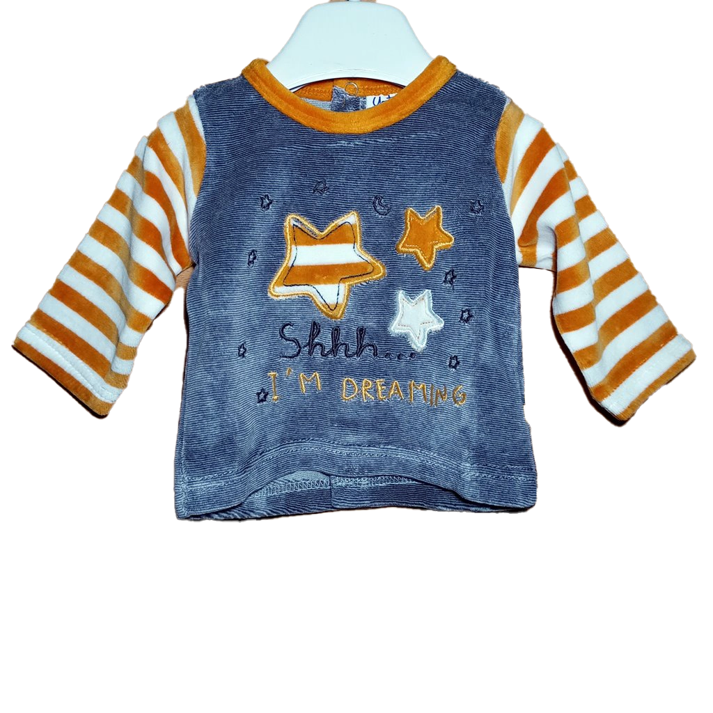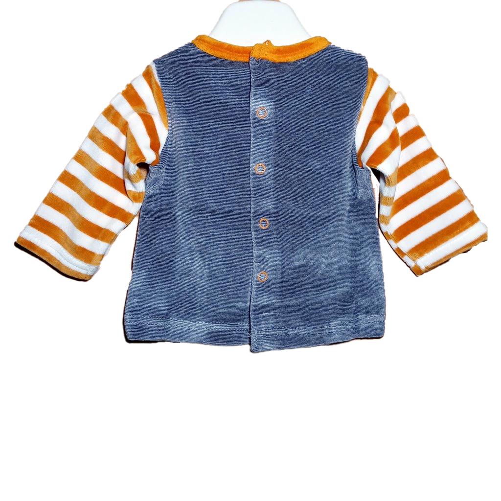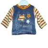 Descubre este encantador conjunto largo de dos piezas para tu pequeño. La camiseta presenta un hermoso diseño cosido a mano, realzando su estilo único. Con un práctico cierre de corchetes en la parte trasera, vestir a tu bebé será más fácil que nunca. El pantalón largo a juego, con su cinturilla elástica, proporciona un ajuste cómodo y seguro para tu pequeño explorador.