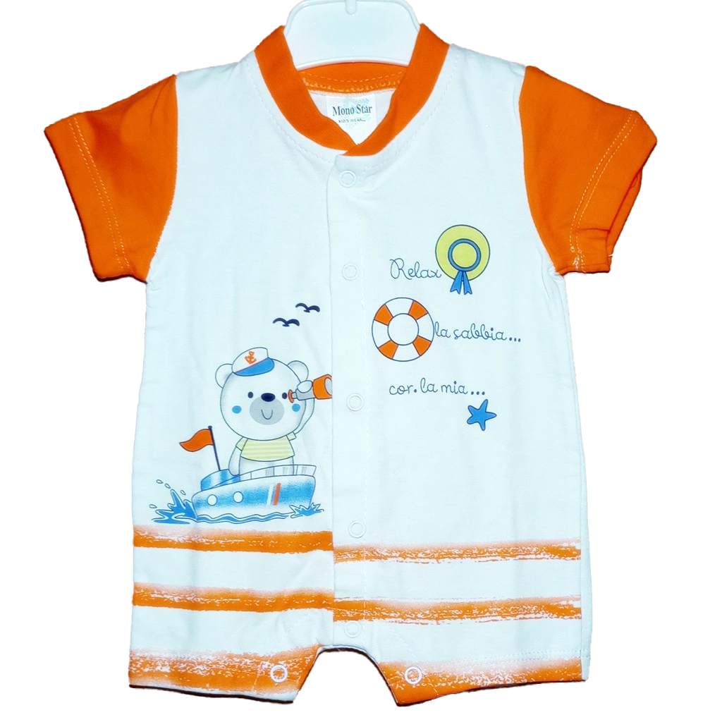 Descubre este adorable pelele corto para bebé, una prenda versátil y encantadora que combina estilo y comodidad. Con su diseño estampado lleno de colores vibrantes y divertidos, este pelele capturará la atención de todos.