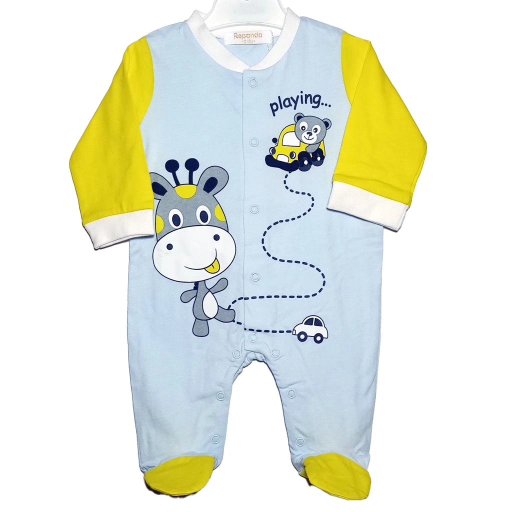 Descubre este adorable pelele largo para bebé con un divertido diseño estampado de personajes animados. Su abertura con corchetes en la parte delantera y las piernas facilita el cambio de pañales y vestir al bebé.